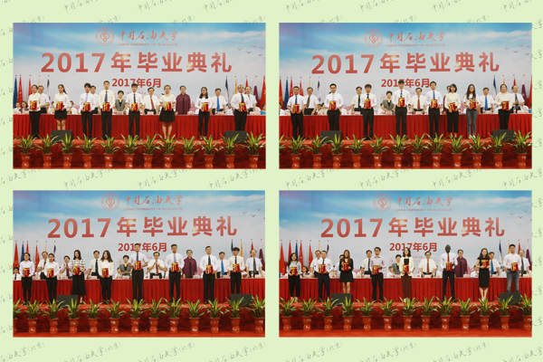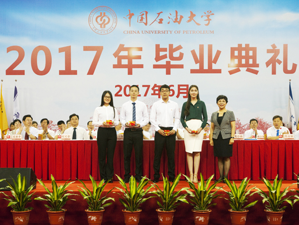 典礼仪式上,赴西部、基层就业毕业生,北京市级、校级优秀毕业生分别获得表彰。2017年,学校积极引导毕业生树立“艰苦奋斗、深入基层、献身事业”的就业理念,唱响“到西部去、到基层去、到祖国最需要的地方去”的择业主旋律,共有358名优秀毕业生志愿赴西部、基层地区就业。2017届全体学生在校期间刻苦学习,努力钻研,不断提高自己的思想政治素质和知识能力水平,实现了自身全面发展,涌现出了一批综合素质优秀、品学兼优的先进典型,共有205名学生获得2017年度“北京市普通高等学校优秀毕业生”荣誉称号,400名学生获得2017年度“中国石油大学(北京)优秀毕业生”荣誉称号。