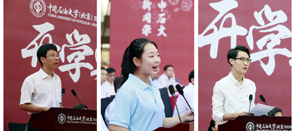工学院教师宋强作为教师代表发言,他希望同学们时刻牢记“厚积薄发,开物成务”的校训,科学上追求至真,道德上追求至善,用实际行动编织人生最美的年华。2017级新生代表、文理学院会计学专业学生杨媛,2016级学生代表、石油学院资源勘查工程专业学生许晨昊先后发言,表达了努力学习、刻苦钻研,为祖国的石油事业贡献力量的决心。