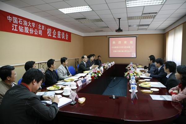 10月16日下午,江钻股份公司总裁谷玉洪一行来校宣讲招聘,蒋庆哲书记、吴小林副书记、刚文哲副书记同他们进行了座谈,双方就校企合作事宜进行深入交流。