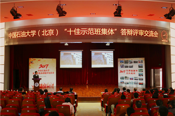 评审现场,候选班级按照抽签顺序依次上台,通过视频和现场展示,讲述精彩生动的班级故事,展示蓬勃向上的班级风貌,体现独具特色的班级文化,全面彰显了石大本科生班集体建设的优秀成果。经过专家评审,最终评选出10个“十佳示范班集体”、11个“优秀示范班集体”。学校将按照答辩评审排名顺序推荐相应班级参加2017年北京高校优秀学生基层组织创建展示活动。