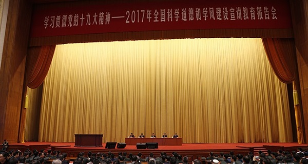 报告会由中国科学技术协会、教育部、中国科学院、中国社会科学院、中国工程院、国家自然科学基金委员会、北京市人民政府共同主办。教育部党组成员、副部长杜占元主持会议。全国政协副主席、科技部部长、中国科协主席万钢出席并致辞,强调党的十九大提出的新思想、新部署、新要求将深刻影响国家和民族未来的发展方向,希望大家牢记从事科学研究的初心,向老一辈科学家学习,不为浮华所扰,不为名利所惑,志存高远,脚踏实地,把个人梦与中国梦紧密融合,把个人价值与社会价值紧密结合,把个人命运与国家命运紧密联系,勇做新时代的探索者和创新者,在实现中华民族复兴伟业的新征程中放飞青春梦想、书写奋斗华章。