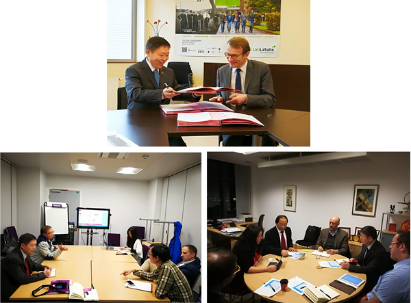 访问期间,代表团一行分别与法国拉萨尔大学校长菲利普·肖凯英国曼切斯特大学校副校长Stephen Flint、英国利兹大学副校长余海岁三校相关学院教师代表进行座谈交流,在加强校际合作关系、联合培养学生、短期学生交流、教师互访、科研合作交流等方面达成合作一致,分别签署合作协议或合作备忘录,并就下一步工作开展制定实施计划。