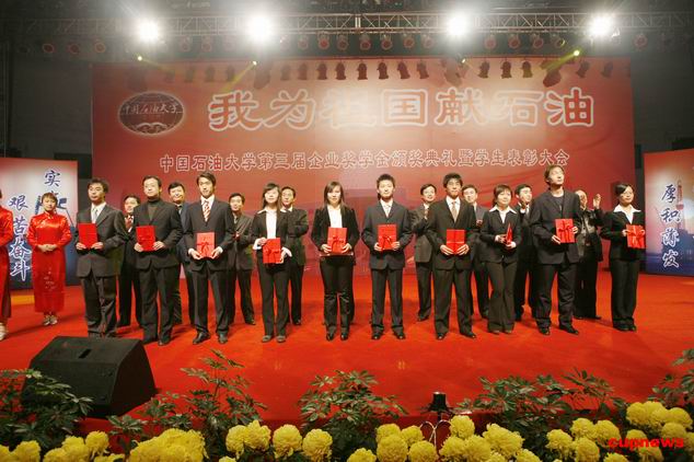 典礼上,各企业代表对各自所在企业做了简单介绍,也对同学提出的殷切的希望。他们希望同学们毕业以后积极投身祖国石油事业,到油田去建功立业,实现自己的人身价值。