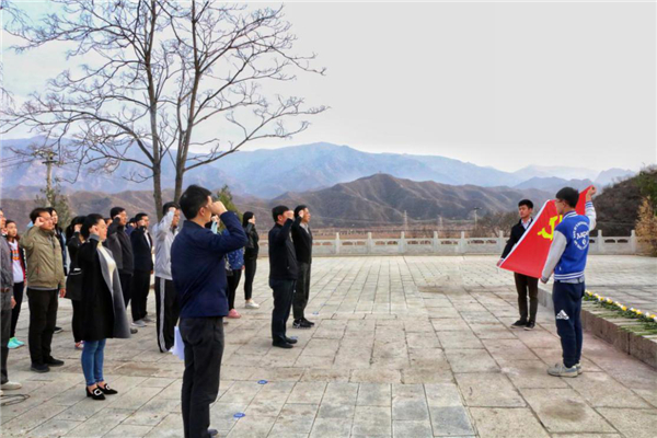会后,全体党员驱车前往革命教育基地门头沟区雁翅镇田庄村,参观了京西山区中共第一党支部旧址,感受了京西山区中国共产党组织创建和成长的光辉历程;瞻仰了雁翅镇革命烈士纪念碑,缅怀在抗日战争、解放战争中牺牲的革命烈士。全体党员还来到门头沟区斋堂镇宛平抗日烈士纪念公园,在宛平县人民八年抗战为国牺牲烈士纪念碑前为烈士默哀、敬献鲜花,并徐徐绕纪念碑一周瞻仰纪念碑和浮雕,感受宛平县人民誓死抗战的钢铁意志。全体党员在教育部规建中心党总支部副书记、副主任陈建荣同志的领誓下,面向党旗庄严宣誓,重温入党誓词。