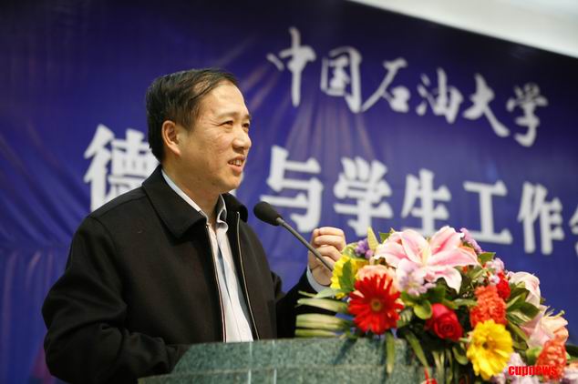 会上,教育部思想政治司司长杨振斌发表了讲话,他充分肯定了我校的德育与学生工作,并希望进一步加强和改进大学生思想政治教育,培养更多更好的优秀人才,为国民经济和石油工作做出更大贡献。