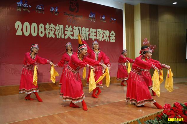 联欢会前,张来斌校长致新年贺词。张校长总结了2007年学校在各个方面取得的成绩,对大家一年的辛勤劳动表示由衷的感谢。张校长说,我校机关、教辅单位是一支数量少、规模小、精练、高效的队伍,是一支能打硬仗的队伍。大家在过去一年通过扎扎实实的工作取得了优异的成绩,但同时,张校长也要大家认识到学校发展中还有很多不足,大家要有忧患意识、危机意识,继续加强学习,勤奋工作,为实现石油石化学科领域世界一流研究型大学的宏伟目标而努力奋斗。