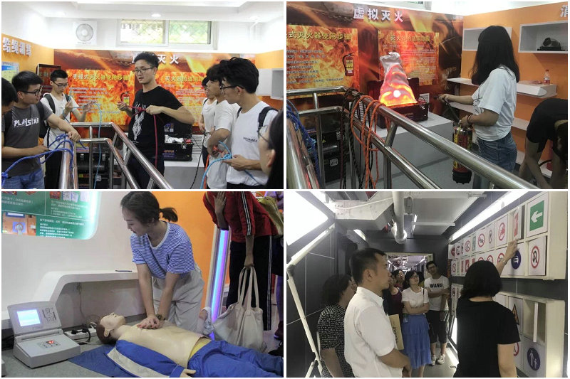 6月22日,石大组织保卫干部、学生志愿者赴北京航空航天大学安全教育体验馆参观了结绳训练区、灭火器使用区、急救训练区、消防技能体验区和个人防护体验区,并亲身体验了绳索打结、心肺复苏、灭火器实操和车辆驾驶等项目。