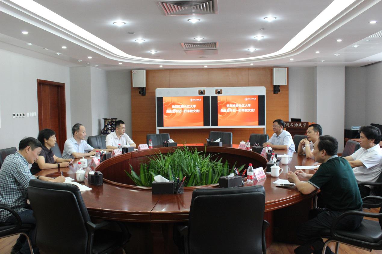 8月1日,长江大学党委书记朱业宏一行到中国石油大学访问交流,石大党委书记山红红、副校长鲍志东接待了朱业宏一行,党政办公室、石油工程学院负责人参加会议。