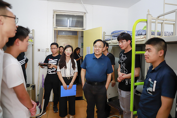 迎新期间,党委书记山红红、校长张来斌分别来到汇才公寓、润杰公寓看望报到的新生和家长,检查迎新工作。他们详细查看了各学院、各社团的迎新接待点,向迎新工作人员询问了新生报到情况,与新生和学生家长亲切交谈,寄予新生新学期的问候,并勉励他们珍惜时光,努力学习,用青春书写精彩人生。