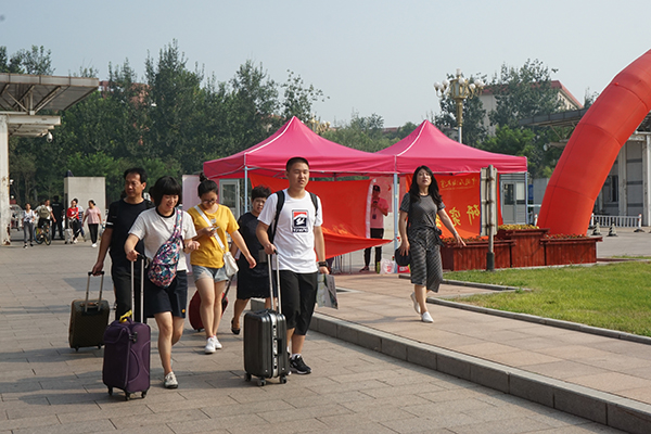 为迎接新生的到来,学校在火车站、北校园、东校园、润杰学生公寓等地设立了新生接待点,各部门、各学院、各社团的工作人员和志愿者们以饱满的热情迎接新生和家长,为他们提供优质、高效、全面的服务。