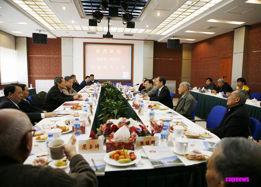2008年1月29日,我校在京召开了老领导、老校友座谈会。中国石油大学原校领导华泽澎、张嗣伟、李云鹏、刘汝洵、葛家理、熊继辉、范玉琦、方华灿、黄述旺、罗维东、柳贡慧;中国石油大学老校友,原中组部部委委员刘是龙,原国家外专局局长王迺,原北京市副市长,原华夏银行董事长、党委书记刘海燕,原全国总工会副主席杨兴富,原北京市人民检察院检察长、党组书记许海峰,原中国石油天然气集团公司纪检组长史训知,原中国石油天然气集团公司副总经理蒋金楚,原中国石化集团公司高级副总裁牟书令,原中国中化集团公司总地质师曾兴球参加了座谈会;我校参加座谈会的校领导有党委书记蒋庆哲,校长张来斌,党委副书记刚文哲,副校长陈大恩、庞雄奇。