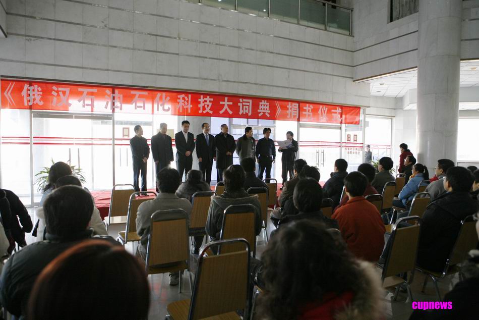2008年月1月29日上午,《俄汉石油石化科技大词典》捐书仪式在图书馆一层大厅举行。该词典由中国石化集团公司组织编写,中国石化出版社出版发行,涵盖了以石油天然气、炼油和石油化工为主的各类专业,词条总量27万条。该词典的出版,填补了国内石油石化科技领域俄汉双语种工具书的空白,对中国和俄罗斯等独联体国家石油石化领域的交流与合作将起到积极的促进作用。