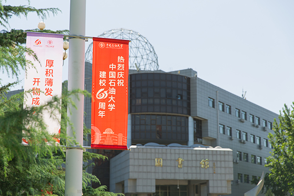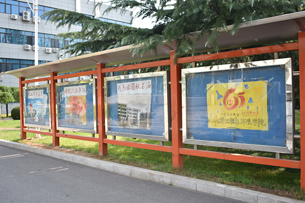秋高气爽,天空湛蓝,鲜花朵朵,生机盎然。中国石油大学(北京)65周年校庆在即,校园里洋溢着热烈浓厚的喜庆氛围。一簇簇颜色亮丽的花朵吐芳展艳,一个个创意新颖的地标饱含深情,一面面主题鲜明的道旗迎风招展,一条条红色鲜亮的梯贴整齐有序,一张张图文并茂的橱窗展板生动活泼,为65周年校庆的到来营造了喜气洋洋的浓厚氛围。