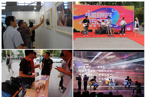 “点·石”人文周活动期间,张来斌为“点·石”人文品牌揭幕,董朝霞为揭幕仪式致辞,近300名师生观看了文艺实践教学成果汇报演出;韩尚峰与石大师生在第四教学楼大厅欣赏了“2018美术摄影展”上艺术课堂学生的美术作品、摄影作品,展览在三周的时间里吸引了千余名同学参观;人文艺术类学生社团在南广场开展了创意互动活动,让学生们在互动中感知艺术文化。