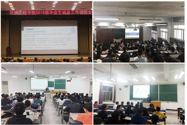 各学院(研究院)毕业生就业动员会上,就业指导中心负责人以及各学院(研究院)学生工作负责人、毕业班辅导员向2019届毕业生讲解了就业形势、就业政策、就业技巧、就业能力提升技能,分析了2019年石油石化领域就业形势、人才供给与需求、招聘趋势,介绍了学校应对当前就业形势的具体措施,并回答了毕业生比较关心的就业方面的相关问题,助力2019届毕业生做好求职规划、求职准备。