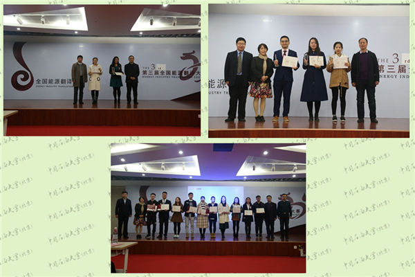 第三届全国能源翻译大赛由专门用途英语研究会能源分会、中国石油大学(北京)主办,中国石油大学(北京)外国语学院承办,吾译超群翻译有限公司、北京同文世纪科技有限公司、北京阳光创译语言翻译有限公司协办。大赛历时四个月,先后收到来自182所高校的近千份稿件,经过严格评审,选拔出50名选手参加复赛,又经过复赛的笔译和演讲,选拔出16名决赛选手参加现场决赛。