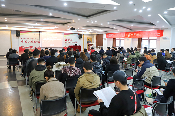 11月15日至16日,中国石油大学举办第十五届学生工作论坛。党委副书记、副校长韩尚峰,北京教育出版社社长、常务副主编李艺英,党委宣传部、学生工作部、团委、就业指导中心、信息中心等相关职能部门负责人以及全体学生工作干部参加了为期2天的论坛活动,共同探讨交流新时代大数据与学生思想政治教育创新的思路与举措。