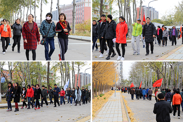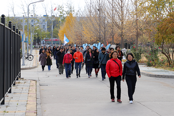活动线路为环东校园两周,总长度约5公里。行进途中,教职工精神饱满,兴致高昂,呼吸着清新空气,欣赏着初冬校园景色,感受新校园的建设与发展,享受着健步走带来的快乐。