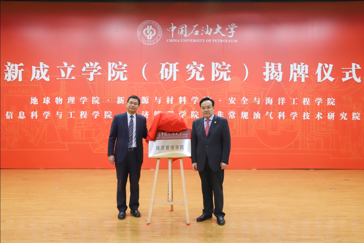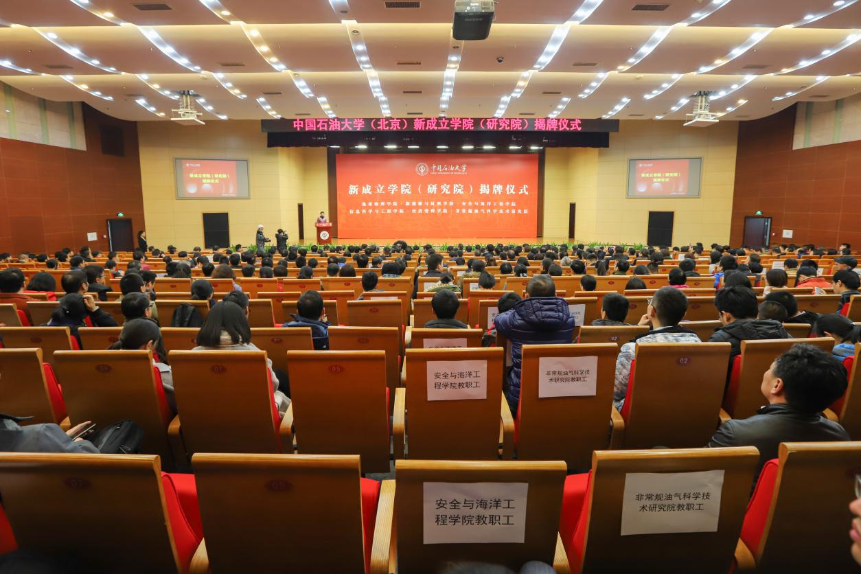 经过近一年的酝酿、论证和筹备,中国石油大学在北京昌平建校办学30年来涉及范围最广、规模最大的一次学院改革调整迎来具有里程碑意义的一刻。11月26日上午,学校在中油大厦报告厅举行简朴而隆重的仪式,为新成立的地球物理学院、新能源与材料学院、安全与海洋工程学院、信息科学与工程学院、经济管理学院、非常规油气科学技术研究院等6个新学院(研究院)揭牌。行进在“双一流”建设征程上的石大,将在新的战略布局下翻开崭新的篇章。