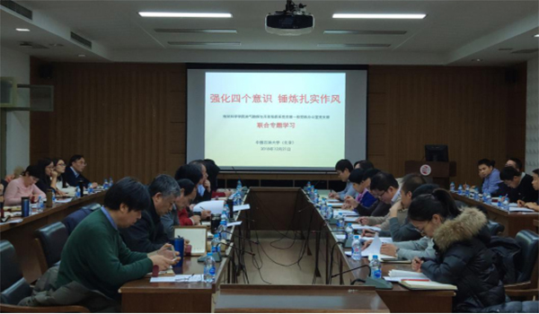 专题学习会上,党政办公室主任文永红就党员教师和机关干部如何讲政治,地球科学学院党委书记王贵文围绕如何提高机关服务水平,地球科学学院院长曾溅辉围绕如何深化综合改革分别作了发言。两个支部的党员围绕作风建设特别是工作方式、办事理念等多个方面展开了交流讨论。
