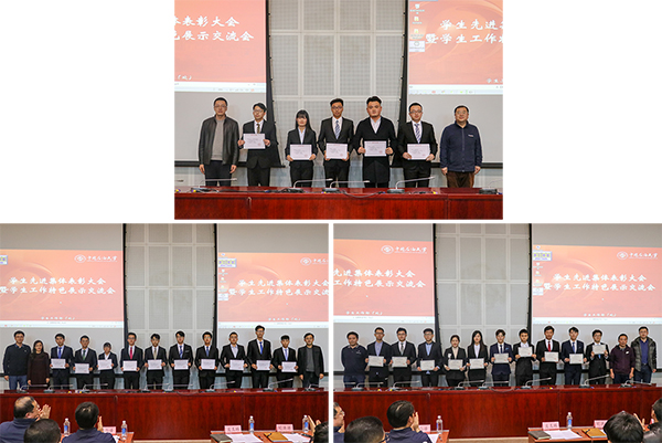 会上,各学院(研究院)学生工作负责人全面展示了本单位在辅导员队伍建设、学生基层组织建设、网络思政、实践育人、学风建设等工作领域采取的创新举措和取得的突出成效。会议还表彰了2018年度本科生“十佳示范班集体”、研究生“十佳集体”以及红色“1+1”示范活动党支部。