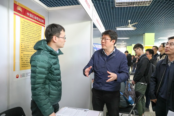 3月15日上午,中国石油大学2019届毕业生春季首场校园双选会在东校园举行。学校党委副书记、副校长韩尚峰现场看望了招聘单位代表,并了解求职毕业生的应聘就业情况。