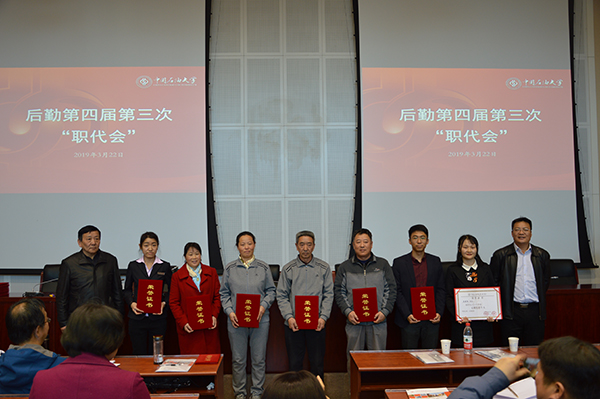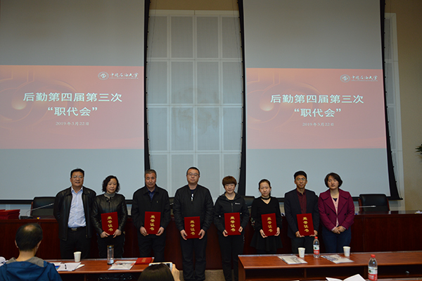 3月22日上午,石大后勤第四届第三次“职代会”在主楼C308会议室召开,共64名正式代表、16名列席代表参加了会议。