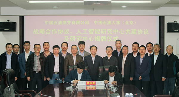 17日上午,中国石油集团测井有限公司总经理李剑浩、总工程师汤天知等接待了李根生一行,并举行座谈会。双方就科研合作、人才培养、实验室建设等问题进行了深入交流,共同听取了人工智能学院院长肖立志教授的专题报告,观看了中国石油大学(北京)宣传片。李根生和李剑浩分别代表校企双方签订了“战略合作框架协议书”“人工智能研究中心共建方案”,并为“人工智能研究中心”揭牌。协议的签订,标志着双方的合作进入一个新的阶段,双方将进一步在科研攻关、科技创新、研发平台建设等方面开展更深层次的合作与交流,结合各自特色和优势,实现互惠互利、共同发展。