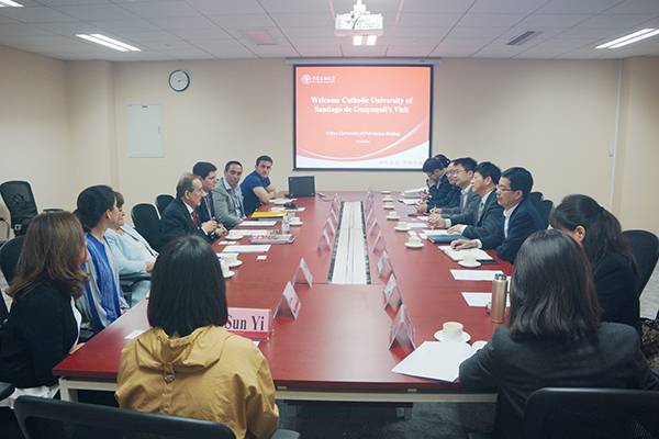 4月24日上午,厄瓜多尔瓜亚基尔圣地亚哥天主教大学(Catholic University of Santiago de Guayaquil)副校长Walter Mera Ortiz、厄瓜多尔共和国驻华大使馆参赞Javier Sanchez Lopez一行8人访问石大。石大副校长李根生会见了代表团,研究生院、国际合作与交流处,经济管理学院、外国语学院、国际教育学院相关负责人参加了会谈。