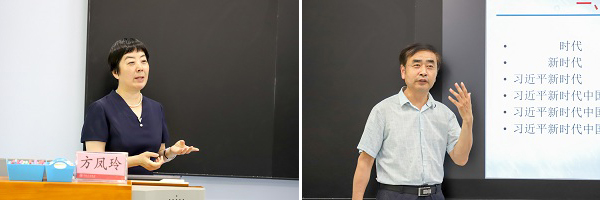 马克思主义学院方凤玲教授、曹培强教授分别为学员作了专题讲座。方凤玲结合相关理论研究成果,对“习近平新时代中国特色社会主义经济思想”进行解读,指出习近平新时代中国特色社会主义经济思想形成的客观基础是生产力理论与社会主要矛盾理论,逻辑起点是人民中心理论,主要内容是新发展理念,新时代中国特色社会主义发展总目标和总任务、经济布局理论、经济制度理论、经济体制理论、现代化经济体系理论、国际发展战略理论等共同构成了科学完整的习近平新时代中国特色社会主义经济思想体系。曹培强以“新时代新文化新未来”为题,解读了新时代的内涵及其表现、特征和本质,分析了党的十九大关于新时代文化建设的基本任务,阐述了新中国70年来石油精神形成和发展的历史与逻辑,结合石大校歌《我为祖国献石油》所蕴含的思想文化内涵,对新时代石大青年教师在教育教学和文化传承中的使命和职业发展路径提出了自己的建议。