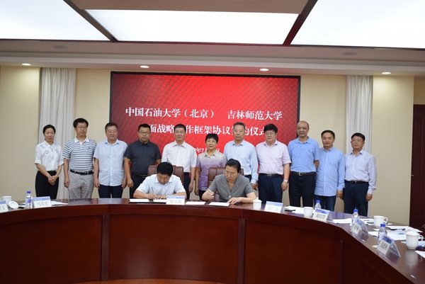 吴小林与张作岭分别代表两校签署了《中国石油大学(北京)与吉林师范大学全面战略合作框架协议》,双方将进一步推动在学科建设、人才培养、科学研究、文化传承与创新、国际合作交流等方面的合作,建立长期全面合作关系,实现优势互补、互惠双赢和共同发展。