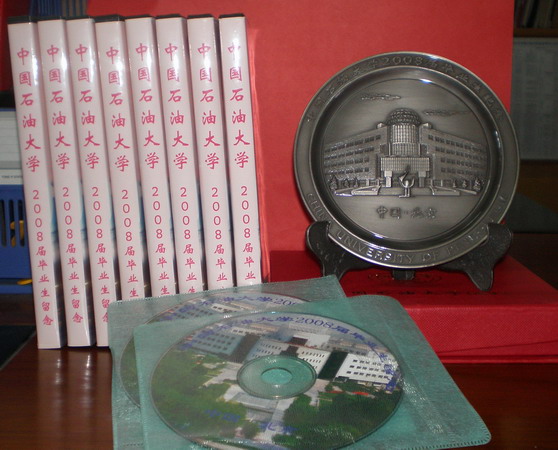 为了表达母校对应届毕业生的深深祝福,学校为即将毕业的学子们准备了精美的纪念礼品,礼品包括一面纪念锡盘和一张纪念光盘。