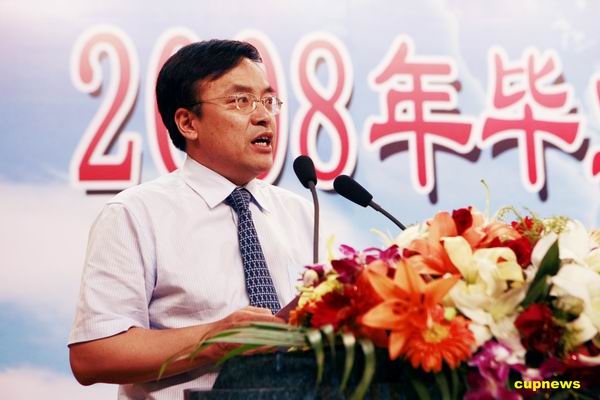 张来斌校长在典礼上发表了热情洋溢的讲话。他说,“时光如梭,去而不返”,同学们在石大的几年时光里,咀嚼了大学生活的酸甜苦辣,见证了学校这几年取得的辉煌成就。同时,也把对学校事业的奉献融入到中国石油大学55年的辉煌历程之中。