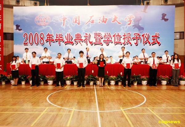 2008年6月27日上午,我校在多功能厅隆重举行2008年毕业典礼暨学位授予仪式。杰出校友代表、中国石油天然气股份有限公司石油化工研究院院长刘显法,校党委书记蒋庆哲,校长张来斌,党委副书记吴小林、刚文哲,副校长陈大恩、徐春明、庞雄奇,以及各院(系、部)、机关处室的负责人和教师代表出席了典礼并在主席台就座。毕业典礼由校党委副书记吴小林主持。