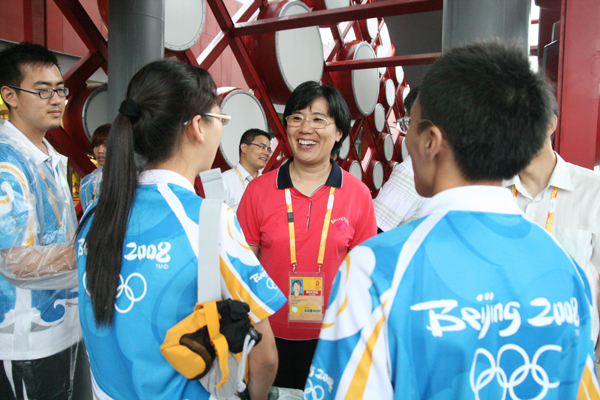 随后,吴小林副书记一行来到我校志愿服务的主阵营——奥林匹克公园公共区。在运行支持观众服务经理邹思源的陪同下,吴小林副书记等从东北安检口进入奥林匹克公共区,环行下沉花园以及主运行中心看望了志愿者。校领导亲切地慰问了志愿者生活和工作状况,当得知志愿者在生活上有较为周到的保障时欣慰的笑了。