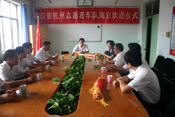 举世瞩目的2008年北京奥运会已顺利闭幕。来我校为奥运志愿者服务的浙江省服务车队也圆满的完成了本次的任务。2008年8月29日下午,在后勤服务总公司二楼会议室,总经理周璀亮、党总支书记杨卓如等与浙江省奥运服务团队的所有服务人员一起举行了离京欢送仪式。