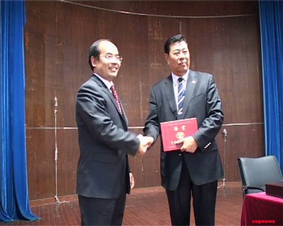 报告会开始前,蒋庆哲书记为武韬大使颁发了“中国石油大学兼职教授”聘书。