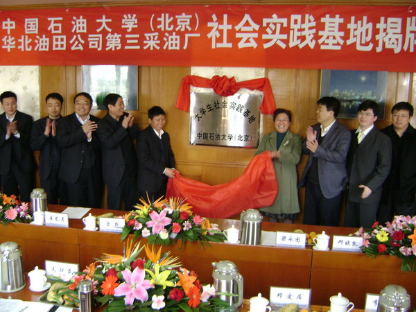 3月31日,石油天然气工程学院与华北油田公司第三采油厂在河北省河间市举行了共建大学生社会实践基地揭牌和协议签署仪式。校团委、石油天然气工程学院相关负责人、学院教师代表以及第三采油厂相关领导出席了揭牌仪式。