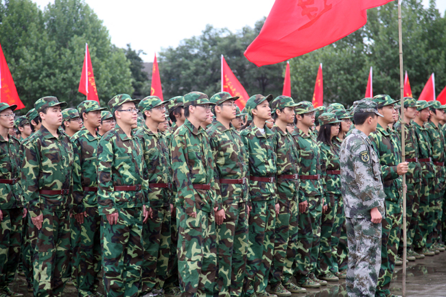 蒋书记在开训典礼上发表了动员讲话。他说,大学生军训,就是要通过对“艰难困苦”和爱祖国、爱人民的身体力行的体验,去领悟和感知理性爱国的深刻意义,去领悟和感知为什么“勇敢战斗,不怕牺牲”、“一不怕苦,二不怕死”、“团结友爱,互相关心”、“艰苦奋斗,勤劳朴素”等等会成为我们的民族精神。军训的目的和意义就是由此而引发开来。他勉励同学们,要通过军事训练,勇敢地摆脱溺爱、摆脱脆弱,不断挑战自我、战胜自我。弘扬正气、高唱战歌,让脆弱者变得坚强,让坚强者更加坚强!