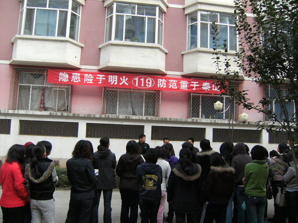 11月7日上午9:00,我校在润杰学生公寓二号楼举行了消防疏散演练。此次演习是模拟现场的形式,假设楼内出现了火灾,学生进行紧急疏散。在宿舍管理员的引导下,不到五分钟,同学们快速、顺利、安全有序地疏散到楼前集合。