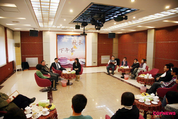 为畅通广大同学与校长沟通的渠道,11月26日下午,我校在翠宫第九会议室举办了“校长下午茶”活动。校长张来斌、校党委副书记雷玉江以及学工处、党办校办、校团委等相关职能部门主要负责人与近15位学生代表齐聚一堂喝茶谈心,就学生共同关注的大学期间的学习、生活、人生规划等话题进行深入交流。