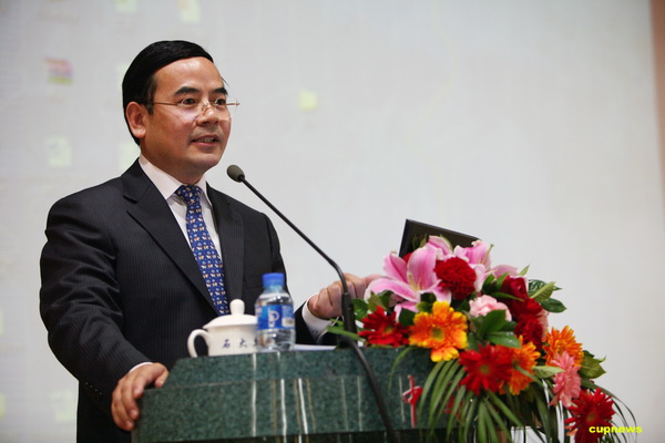 校长张来斌在大会上作了《实施人才强校战略 推动学校全面协调可持续发展》的工作报告。他在报告中从四个方面总结了我校人才队伍建设取得主要成就:一是以高层次拔尖人才和青年后备人才为重点,师资队伍整体水平得到提高;二是深化内部管理体制改革,激发了教职工队伍内在活力;三是深化人事分配制度改革,保障了教师队伍持续稳定发展;四是加强师德建设,营造了尊师重教的良好氛围。同时,他指出,深入分析我校人才队伍的发展现状,在队伍建设中还存在着高层次拔尖人才、青年拔尖人才和创新团队“三支队伍”建设还有较大差距,高水平人才梯队有待形成;师资队伍结构需进一步优化;学科发展不平衡,各学科整体水平有待提升;具有海外背景的教师数量较少,国际化水平偏低等问题。产生这些问题的主要原因是思想观念、思想认识不能适应学校发展的要求;体制机制改革不适应学校发展的要求;校园环境氛围的建设不适应学校发展的要求。