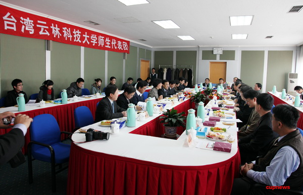 张校长首先致辞,对客人的来访表示热烈欢迎,指出两校合作发展顺利,应该迈出更大步伐。云林科技大学杨校长对我校的热情接待表示感谢,建议在本科生交换基础上,进行研究生培养的合作。在随后进行的座谈会上,双方就已经开展的合作和交流进行了简要总结,并就各自基本情况特别是科研领域的优势和研究成果进行了详细介绍,对今后可能开展科研和学术合作的领域进行了展望,希望突破现有交流模式,提升交流品质。双方均有意在继续加强学生交换方面的合作之外,进一步以教师互访、教师间科研合作、短期访问、共同举办论坛和研讨会等各种形式推进交流。