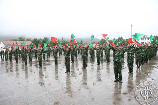 秋雨绵绵、群山环抱,1700余名学生以威武的军姿、整齐的步伐和虎虎生威的表演接受了校长张来斌的检阅,展现了16天的军训成果。典礼上,除了军体拳、格斗术的整体科目汇报外,“旗语”方队、“三声三相”方队、“匕首操”和“倒功”方队进行特色方队汇报表演,精彩的表演博得了学校领导和部队首长的一致喝彩。