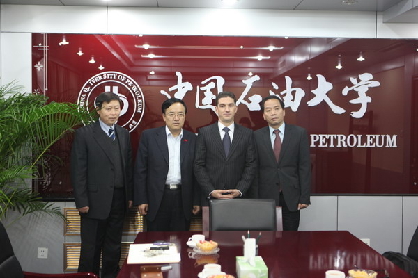 10与18日下午,德国BSK 国际教育机构执行总裁Kai Fiedler博士、驻华代表陈钢先生等一行三人对中国石油大学进行了访问。校长张来斌会见了客人。