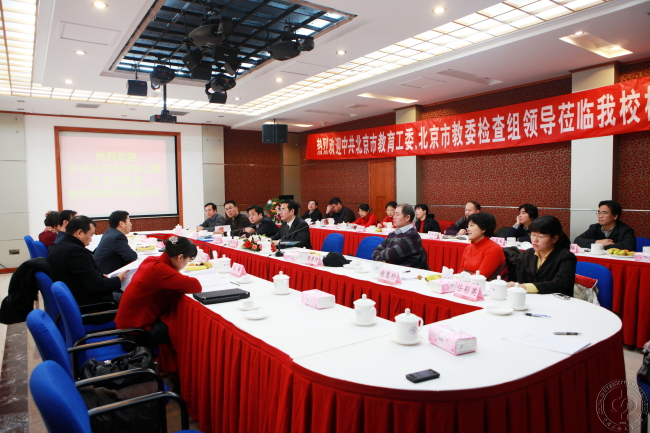 12月24日,中共北京市委教育工委委派检查组来中国石油大学检查2010年落实党风廉政建设责任制推进惩防体系任务完成情况。检查组由市教工委副书记王民忠,中央美术学院党委副书记、纪委书记孙红培,北京电影学院党委副书记、纪委书记孙立军,北京师范大学纪委副书记李季,中央美术学院纪监审办公室副主任刘娟等5人组成。校党委书记蒋庆哲,校长张来斌,党委副书记、纪委书记刚文哲,党校办、组织部、宣传部、纪委、监察审计处、学工部、财务处、人事处、教务处、研究生院、科研与设备处、后勤管理处、基建处以及地学院、石工学院、化工学院、远程教育学院、后勤服务总公司等部门的负责人参加了会议。