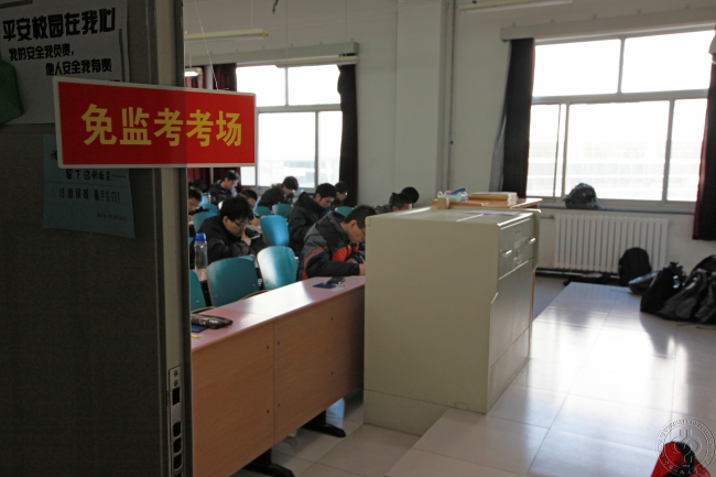 1月10日上午进行了首门免监考考试课程《大学物理Ⅱ》的考试。该课程共设考场36个,其中免监考考场为5个(3-309、3-413、3-414、3-415、3-416)。