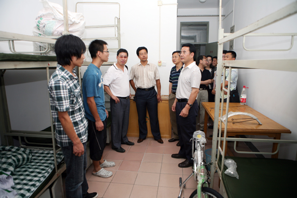 校党委书记蒋庆哲在党、校办公室,学生工作处、研究生院、后勤管理处、宣传部等部门负责人的陪同下,迎着细雨来到研究生公寓,看望了新报到的研究生。每走进一间学生寝室,蒋庆哲都与新生亲切交谈,细心询问了新生的本科就读学校、报考专业、来校后的生活情况和对学校环境感受,并希望同学们尽快熟悉校园环境,转变角色,融入到全新的研究生学习生活中。