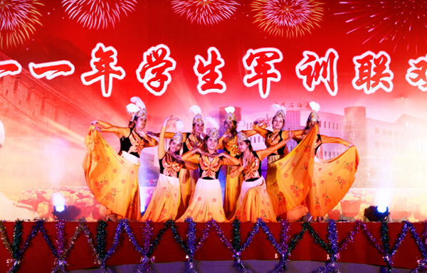 晚上7点,中国石油大学军训团组织全体同学进行了拉歌活动,各营积极互动,现场气氛活跃,全体新生用一曲整齐、嘹亮的军歌合唱《团结就是力量》拉开了晚会序幕。形式多样的晚会节目涵盖了歌曲、舞蹈、快板、诗朗诵等类型,许多节目出自学生原创,充分展现了2011级新生进取、向上的精神面貌。富有民族风情的维族舞蹈《舞动的新疆》、蒙古族舞蹈《布里亚特情》和傣族舞蹈《竹楼情歌》尽展才华;幽默诙谐的三句半《戏说军营》、回味军训生活的快板《军训新歌》彰显激情与活力;由《北京欢迎你》、《沂蒙山好地方》、《家在东北》、《布达拉宫》等歌曲共同组成的方言联唱《欢乐大中国》也是晚会一大亮点,唤起浓浓思乡情。