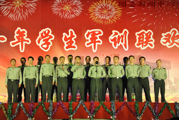军训团的教官合唱《朋友》又将全场气氛再一次推向高潮,平日严肃认真的教官们在台上放声歌唱,拉近了与学生之间的距离,场下掌声雷动,欢呼声经久不息。晚会在合唱《明天会更好》中结束,也为2011级新生军训画上了完美的句号。